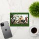 Célébrez Noël avec ce design classique avec un arrière - plan vert de forêt profonde et l'élégant texte "Joyeux Noël" sur le devant. Personnalisez-le avec votre nom de famille et ajoutez votre propre photo de famille pour le rendre spécial. Le dos est fini dans la même couleur vert forêt pour un look intemporel.