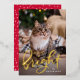 Carte de vacances pour chat moderne avec la photo verticale de votre chat avec "Meowy and Bright" dans une superposition de script en feuille d'or écrit à la main. Personnalisez l'avant de la carte de vacances en feuille d'or en ajoutant votre nom. La carte de vacances photo chat revient pour mettre en vedette un simple motif étoilé rouge et blanc.