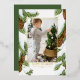 Joyeuses Fêtes ! Envoyez des salutations chaleureuses à votre famille et vos amis avec cette carte de vœux dorée à la feuille personnalisable. Elle présente des illustrations à l'aquarelle de cônes de pin enneigés et d'aiguilles de pin. Les textes sont entièrement modifiables. Personnalisez en ajoutant des noms, un message, une photo et d'autres détails. Cette carte de vœux à l'aquarelle est parfaite pour toutes les fêtes hivernales.