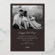 Cartes de Noël classiques minimalistes à deux faces avec cadre en feuille d'or sur arrière - plan couleur brun foncé avec photo de famille personnalisée et messages de vacances.