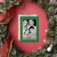 Photo moderne Noël élégant script croisé vert Foil Holiday Card. Conseils : votre photo sera automatiquement convertie en Black & White après téléchargement.