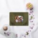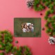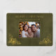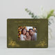 De délicates branches de houx en feuille d'or mettront en valeur votre photo de Noël spéciale de famille sur cette belle carte. Les mots "Joyeux Noël !" apparaissent dans une typographie nette et claire juste au-dessus d'un espace réservé pour le nom de votre famille et l'année. Le design moderne, épuré et simple fera ressortir votre photo. Un fond en imitation cuir vert apporte une touche de luxe. Le dos de cette superbe carte est en imitation cuir beige clair sur lequel vous pouvez écrire.