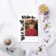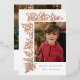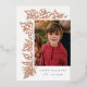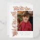 Carte de vacances en feuille d'aluminium avec photo de feuillage d'élégante verdure avec une guirlande botanique moderne dessinée à la main avec une photo décalée sur le devant. Le dos comporte une deuxième photo avec un message personnel et l'année. Cliquez sur le bouton personnaliser/modifier pour personnaliser ce design avec vos photos et détails.