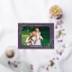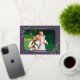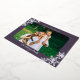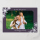 Une élégante carte de vœux de fêtes représentant un cadre photo horizontal à coins arrondis sur fond violet foncé. Le design est agrémenté de flocons de neige en feuille d'argent.