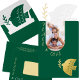 Carte De Vœux En Aluminium Photo de Noël Vert Profond, Beurre Jaune & Or