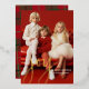 Un look moderne pour un carte photo de vacances. Un mot de feuille d'or - joie - est au-dessus de la photo et des voeux de vacances. Ajoutez une photo verticale et le nom de famille à cette carte photo de Noël. Vous pouvez même changer le salut de Noël en un autre dicton. Le design du dos comprend un motif en plaid de Noël rouge et vert pour un look classique. Pour les utilisateurs avancés, vous pouvez aller dans la zone de conception avancée et modifier les couleurs.
