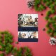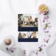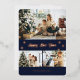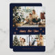Elégant bleu marine et or rose Bonne année carte avec un collage photo avec empreintes de pattes roses en feuille d'or et texte sur le devant et un arrière - plan bleu plaid à l'arrière.