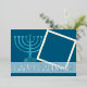 Carte De Vœux En Aluminium Photo Hanukkah Menorah Bleu Blanc Or Paillettes