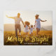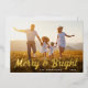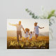 Carte de vœux de Noël moderne avec votre photo surimprimée de "Merry & Bright" en écriture véritable à feuille d'or.