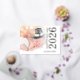 Photo personnalisée moderne Texte pivoté Joyeux Nouvel An 2026 Impression de luxe en or, or rose ou argent pour Bonne Année 2026 qui est tourné à droite, et ajoutez votre photo préférée à gauche pour remplacer l'exemple de photo. Vos noms sont également imprimés en papier papier.
