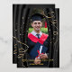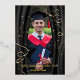 Formal Classic Black Gold Graduation Photo Party, Cette invitation branchée et élégante à la fête de classe comprend une photo du diplômé de 2024 et une seconde photo, défraîchie. Sur le devant, il y a un script décontracté de faux or moderne avec le nom de la grad, l'école et l'année de classe. Sur le dos est le nom de grad avec toutes les informations de votre parti clairement imprimés sur une superposition. Une invitation de graduation simple et élégante qui mettra en évidence les photos personnelles préférées de votre diplômé!, Cliquez sur le bouton Modifier pour customiser ce design.