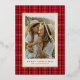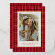 La carte de vacances Red Classic Christmas Plaid Photo Foil est dotée d'une plaque classique et traditionnelle avec des détails en feuille d'or et une seule photo.