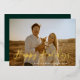 Script d'or festif, carte photo de vacances. Caractéristiques, support couleur vert solide avec espace modèle pour votre message de vacances personnel.