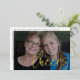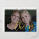 CONCEPTION AVANT : Un salut en feuille d'or - applaudissements - se trouve au-dessus de la photo dans une grande police de caractères tendance. La photo est hors du centre, et la signature de la famille entoure la bordure blanche. Un accent de bordure en or est également inclus. — DESIGN ARRIÈRE : Le design arrière comprend un motif chevron dans les tons bleus. Les couleurs peuvent être changées dans l'espace design avancé.