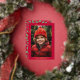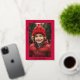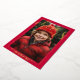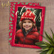 Grande photo Verticale sur le devant Une grande photo de Noël avec une bordure rouge fait un accueil moderne et audacieux de vacances. Une feuille d'or - Cheers to the Nouvel An - est au-dessus de la photo et des voeux de vacances. CONCEPTION DE L'ARRIÈRE La conception de l'arrière est une couleur rouge uni avec une impression botanique.