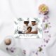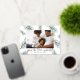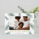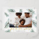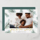 Un design moderne et élégant de carte de vacances avec votre photo préférée orientée paysage ou horizontale entourée de pics vert d'eau et de la verdure de Noël. "Joy to the World" apparaît sous la feuille d'or écrit à la main. Personnalisez avec votre nom de famille le long du bas.