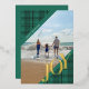 Partagez la JOIE avec votre famille et vos amis avec cette carte de vacances en papier métallisé à motif carreau et à photo unique réaliste. Elle présente un fond à carreaux traditionnel et un message de JOIE moderne en typographie métallisée réelle. Personnalisez avec du papier métallisé or véritable, argent ou rose. Personnalisez cette carte plate avec votre nom, année et photo personnalisés sur la couverture. Choisissez parmi un large éventail de types de papier. Sélectionnez la carte rectangulaire de 5" x 7" ou ajoutez une forme de bordure découpée. Les articles assortis sont disponibles. Parfait pour votre carte d'automne, de Noël rustique ou de vacances.