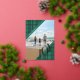 Carte De Vœux En Aluminium Plaid JOY Diagonal Turquoise Véritable