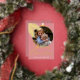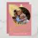 Carte de voeux de Noël classique contemporaine avec aiguilles de pin blanc en fer feuille motif sur un arrière - plan rose vif élégant, avec véritable feuille d'or Joyeux texte de voeux de Noël. Avec l'option et la place pour customiser le texte, le nom de famille et la date de l'année, et ajouter une photo personnelle de votre choix sur le devant, et un message de salutation de saison personnalisable sur le côté arrière de la carte.