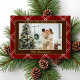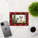 Carte De Vœux En Aluminium Polo Equestrian Red Burgundy Plaid Photo Christmas