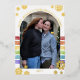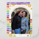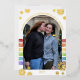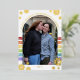 Carte photo Joyeux Holigays avec des flocons d'or, des rayures arc-en-ciel et votre photo à l'intérieur d'une arche avec du texte courbé. Carte de Noël drôle et jolie LGBT avec des rayures arc-en-ciel, des flocons d'or en relief et du texte en or autour de votre photo.