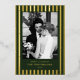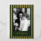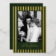 Embrassez la romance et le charme de la saison des fêtes avec notre élégante carte de Noël "Merry & Married" avec des rayures de verdure persistante, un mélange parfait d'élégance vintage et de sophistication à l'ancienne.