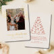 Red Christmas Tree Doodle Coquette Bow Gold Foil Carte de vacances. Customisez avec une photo et votre propre salutation personnalisée.