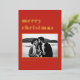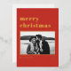 Joyeux Noël! Envoyez vos souhaits de vacances à votre famille et à vos amis avec cette carte de Noël moderne personnalisable. Il présente une typographie rétro et audacieuse avec un accent d'arbre de Noël sur un arrière - plan rouge. Personnalisez cette carte de vacances photo en ajoutant vos propres détails. Cette carte de Noël en feuille d'or est disponible en d'autres couleurs.