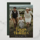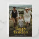 Cette Retro Happy Holidays Christmas Photo Vertical Gold Foil Holiday Card offre un design propre et sophistiqué avec une photo de famille complète et une grande typographie rétro de script "Happy Holidays". Le style décontracté, mais rétro, se fond sans effort dans le cadre naturel, ce qui en fait une option idéale pour les familles à la recherche d'un accueil intemporel.