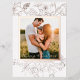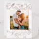 Partagez vos vacances avec cette élégante feuille d'or dessinée à la main et cette carte de Noël blanche et fleurie. Doté de fleurs sauvages roses délicats en feuille d'or encadrant le design et l'accueil "Joyeux Noël", cette carte moderne comprend également de l'espace pour personnaliser avec votre propre photo. Une façon intemporelle et élégante d'envoyer des voeux chaleureux à la famille et aux amis en cette période de vacances.