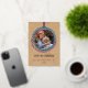 Carte de voeux de Noël classique contemporaine avec rose vif, bleu turquoise et vert couleur couronnes feuille motif sur une texture rustique en papier kraft faux brun, avec véritable feuille d'or rose LOVE JOY CHEER texte souhaité. Avec l'option et la place pour customiser le texte, le nom de famille et la date de l'année, et ajouter une photo personnelle de votre choix sur le devant, et un message de salutation de saison personnalisable sur le côté arrière de la carte.