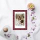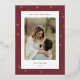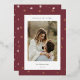 Partagez vos voeux de vacances avec ces cartes de Noël photo avec votre ensemble photo préféré sur un arrière - plan moderne et minimal de flocons de neige en feuille d'or rose sur la bourgogne rouge riche. Une zone de message modifiable vous permet de customiser votre accueil de vacances en lettres modernes. Ajoutez votre nom de famille ou vos noms en-dessous.