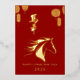 Carte de vœux festive rouge et or pour la nouvelle année sur le calendrier lunisolaire, 2026.