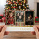 Vœux de la saison et meilleurs vœux ! Notre carte de vœux de Noël est conçue pour célébrer l'amour et les rires de votre famille. Le fond classique à carreaux rouge, vert et beige offre une atmosphère festive et intemporelle, tandis que le lettrage « Joyeuses Fêtes » en or élégant et le flocon de neige en bas ajoutent une touche de sophistication. Mettez en valeur vos trois photos de famille préférées dans des cadres en feuille d'or qui brillent, créant un souvenir magnifique et personnalisé. Au verso de la carte, une grande zone de texte blanche vous permet de partager votre message de Noël sincère, entourée du motif à carreaux cosy. Envoyez une carte aussi unique et précieuse que les souvenirs que vous avez créés ensemble. Créé par Simply Farmhouse Press.