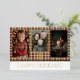 Carte De Vœux En Aluminium Rouge rustique et carreau vert Photo Joyeuses Fête