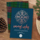 Un look moderne pour une carte de vacances d'entreprise. Un énorme flocon de neige et des "voeux les plus chauds" en feuille d'or rose. Un accueil de vacances qui peut être utilisé pour n'importe quelle société. Un design d'affaires élégant avec un motif chaud et moody plaid sur le dos.