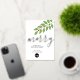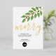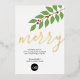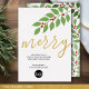Un look moderne pour une carte de vacances d'entreprise. Un énorme script "joyeux" en feuille d'or. Un accueil de vacances qui peut être utilisé pour n'importe quelle société. Ajoutez votre logo et votre accueil saisonnier à ce design unique. Un design d'entreprise élégant avec un motif de lignes courbes et des feuilles à l'arrière.