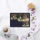 Notre design festif et élégant de carte Hanoukka est la façon parfaite de montrer 3 de vos photos de famille préférées dans un montage arrondi. Le design comprend "Joyous Hanoukka" en typographie brillante feuille d'or et écriture manuscrite, avec votre nom de famille sur un arrière - plan bleu nuit. Les cartes retournent à un motif étoilé blanc.