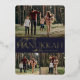 Notre design festif et élégant de carte Hanoukka est la façon parfaite de montrer trois de vos photos de famille préférées - un horizontal/paysage et deux carrés. Design caractéristiques "Joyous Hanoukka" dans la typographie brillante feuille d'or et écriture manuscrite, avec votre nom de famille. Les cartes retournent à un motif étoilé blanc.