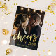 Cette carte moderne et élégante de la nouvelle année 2023 présente une typographie en feuille d'or tendance qui dit "applaudissements à 2023", et présente votre photo personnelle préférée. Le dos de la carte est noir.