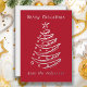 Élégant sapin de Noël en feuille d'argent sur carte de vœux de Noël rouge personnalisée avec votre nom et votre message spécial. Ou gardez notre message si vous le souhaitez.