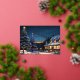 Carte De Vœux En Aluminium Scène peinte de la Maison de Noël