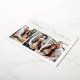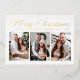 Carte de vacances moderne avec "Joyeux Noël" dans un élégant script de calligraphie en feuille d'or avec un arrière - plan blanc. La carte de vacances en feuille contient 3 de vos photos verticales préférées. Personnalisez la carte de vacances multi-photo en ajoutant votre nom de famille et l'année. La carte inverse pour afficher un motif de neige noir et blanc.