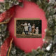 Cartes photos de vacances modernes avec votre photo horizontale avec "Joyeux Noël" affiché dans un script manuscrit en feuille d'or. Personnalisez la carte photo de Noël en papier peint avec votre nom de famille et l'année en lettres blanches. La carte de vacances photo unique revient pour afficher une photo supplémentaire et un arrière - plan marron-caramel avec des points blancs subtils.