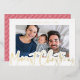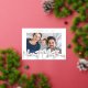 Ce carte photo de vacances moderne dispose d'un script de calligraphie saluant en feuille d'or surélevée sur un arrière - plan blanc avec une seule photo horizontale. Le dos a un motif simple mais festif en diagonale rouge et blanc qui peut être enlevé si désiré. Ce design moderne fonctionne bien avec de nombreuses photos différentes. Ajoutez le facteur "wow" avec une vraie carte de vacances en papier peint pressé cette année !