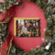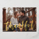 Carte Thanksgiving moderne avec votre photo horizontale avec "Thankful" affichée en écriture manuscrite en feuille d'or avec votre nom de famille affiché ci-dessous. La carte Thanksgiving en feuille revient pour présenter un motif de feuillage blanc avec un arrière - plan jaune doré.