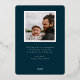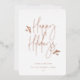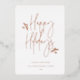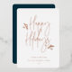 Happy Holidays, un script tout simplement festif avec des accents de feuillage, véritable typographie de feuille d'or. Photo cadre carré simple avec espace modèle pour votre message de vacances personnel sur le dos avec arrière - plan bleu foncé.