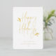 Joyeuses Fêtes, script simplement festif avec accents de feuillage, typographie à feuille d'or véritable. Cadre photo carré unique avec espace de modèle pour votre message de vacances personnel au dos sur fond vert foncé.