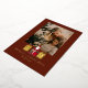 With an intricate Santa with gifts design these gold foil cards are perfect for this Christmas! These cards read “merry Christmas” on a red background. Add your own photo and name using the personalization feature.