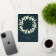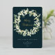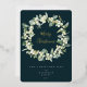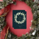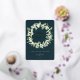 Carte de vacances plate avec des neiges peintes à la main et des tiges d'eucalyptus arrangées en une belle couronne de Noël contre un arrière - plan vert foncé. Les points pressés à l'huile sont éparpillés tout au long de la conception et le message de Noël (modifiable) est également imprimé en feuille. Le verso est vide si vous souhaitez ajouter un message plus long ou un résumé annuel - ou télécharger une photo si vous le souhaitez. D'autres couleurs et des éléments de coordination (pour la plupart sans feuille) sont disponibles.